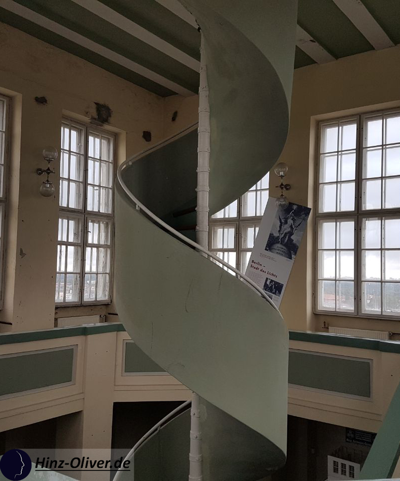 Anlässlich des Jubiläums gab es Führungen durch den Peter-Behrens-Bau bei denen man allerlei Interessantes erfahren konnte. Einen Besuch des Peter-Behrens-Bau kann ich jedem Schöneweider nur empfehlen. Von dort oben hat man einen herlichen Ausblick und auch das Gebäude seltbst hält tolle Einblicke in diese kühne Architektur bereit.